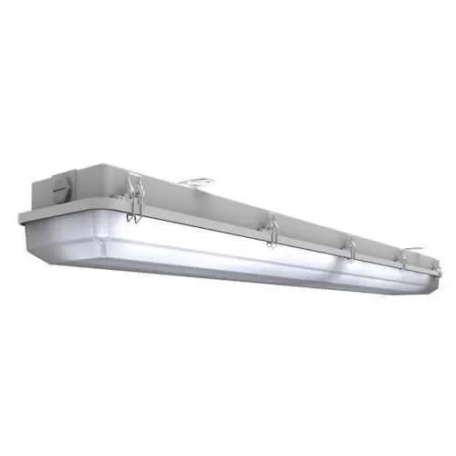 Feature: 4 ft LED linear fixture delivering 700 lumens at 120–277 VAC with 50/60 Hz operation. Business Impact: Consistent, energy-efficient illumination reduces energy costs and maintenance cycles. Application: Ideal for long corridors, workcells, and general area lighting in manufacturing facilities. Feature: IP66 ingress protection and NEMA 4X enclosure. Business Impact: Superior moisture, dust, and abrasion resistance lowers total cost of ownership in washdown areas and harsh environments. Application: Wet locations, outdoor facades, and production floors with high-cleaning requirements. Feature: Matte polycarbonate red lens. Business Impact: Enhanced visual signaling and zone identification improves operator awareness and safety metrics. Application: Signaling corridors and restricted zones in high-traffic plant floors. Feature: Fiberglass-reinforced polyester housing. Business Impact: Chemical resistance and durable construction extend service life in aggressive environments, reducing replacement cycles. Application: Chemical processing, paint booths, and facilities with exposure to solvents. Feature: 52.8 in fixture length with 7.625 in width and 5 in height (approx. 18.25 lb). Business Impact: Retrofit-ready in standard 4 ft layouts; straightforward mounting and alignment minimizes installation time and labor costs. Application: Replacements in existing 4 ft luminaire runs and new installations in linear lighting plans. Feature: Rated for Ordinary/Non-Hazardous Locations with NEC/CEC compliance. Business Impact: Simplified procurement and regulatory alignment lowers project risk and procurement lead times. Application: General industrial spaces, offices, and manufacturing bays that require robust, code-compliant lighting.