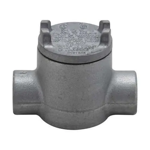GUAC16 Eaton Crouse-Hinds: Eaton Crouse-Hinds series Condulet GUA conduit outlet box with cover, 3" cover opening diameter, Feraloy iron alloy, C shape, 1/2"