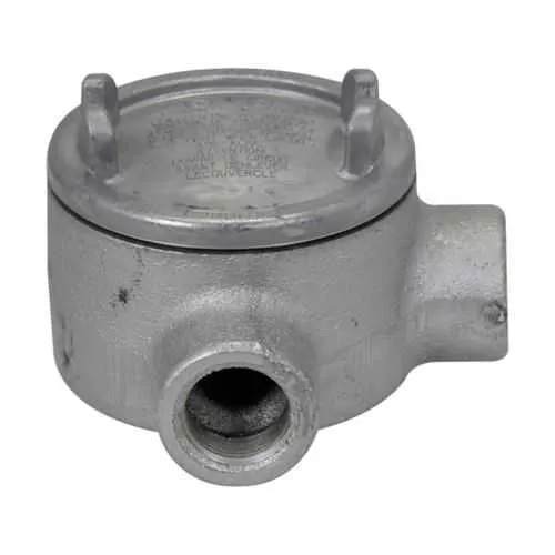 GUAM47 Eaton Crouse-Hinds: Eaton Crouse-Hinds series Condulet GUA conduit outlet box with cover, 3-5/8" cover opening diameter, Feraloy iron alloy, M shape, 1-1/4"