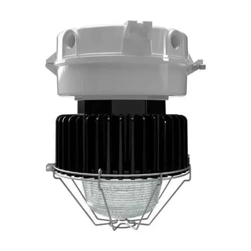 This luminaire delivers 7000 lumens at 59 W with a lumen-per-watt rating of 127, and a power factor greater than 0.90. It operates on 100–277 VAC or 127–250 VDC at 50/60 Hz and is dimmable, enabling tighter control of lighting levels in compliance with energy management programs while maintaining safe illumination levels in hazardous locations.