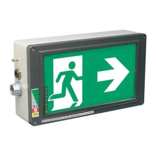 Feature: LED lamp type delivers low power consumption and extended life. Business impact: lowers energy costs and maintenance intervals, increasing system availability. Application: ideal for continuous operation in refineries and chemical plants where sign uptime is critical. Feature: Wide voltage compatibility 120-277 VAC and 110-250 VDC with 50/60 Hz input. Business impact: simplifies integration, reduces transformer requirements, and consolidates inventory. Application: retrofit projects and new builds across mixed electrical systems. Feature: IP66 enclosure in an aluminum alloy housing withstands dust, water spray, and washdowns. Business impact: enhances reliability in harsh plants, reducing corrosion risk and service calls. Application: oil & gas, mining, chemical processing, offshore platforms. Feature: Self-diagnostic and self-test with nickel cadmium battery. Business impact: enables proactive maintenance, faster fault isolation, and reduced unplanned downtime. Application: regulated facilities requiring regular verification of emergency equipment. Feature: Exit sign designation Arrowhead right, 3h runtime and 3/4 inch entry for conduit. Business impact: clear egress indication and installation flexibility in tight spaces. Application: wall-mounted installations near exit routes in hazardous areas. Feature: Certifications NEC/CEC, Hazardous/Classified Locations ratings Class I/Zone 1 and Class II/Division 2, plus IP66. Business impact: regulatory alignment and safe operation, easing procurement audits. Application: manufacturing, petrochemical, mining environments.