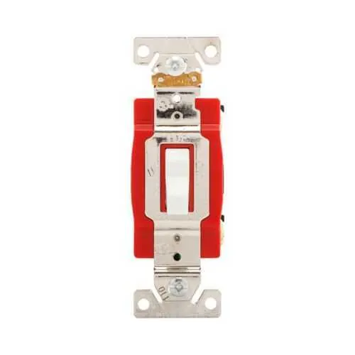 1221W Eaton: Eaton construction grade toggle switch, #14-10 AWG, 20A, Flush, 120/277V, Back and side, Screw, White, Single-Pole, Single-Pole, Brass, Polycarbonate