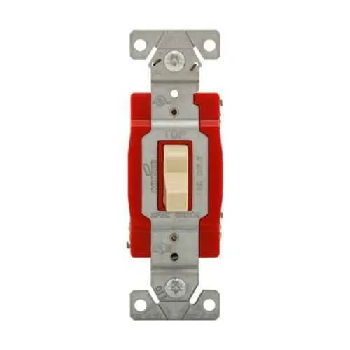 1223V Eaton: Eaton construction grade toggle switch, #14-10 AWG, 20A, Wall, 120/277V, Back and side, Screw, Ivory, Three-Way, Polycarbonate