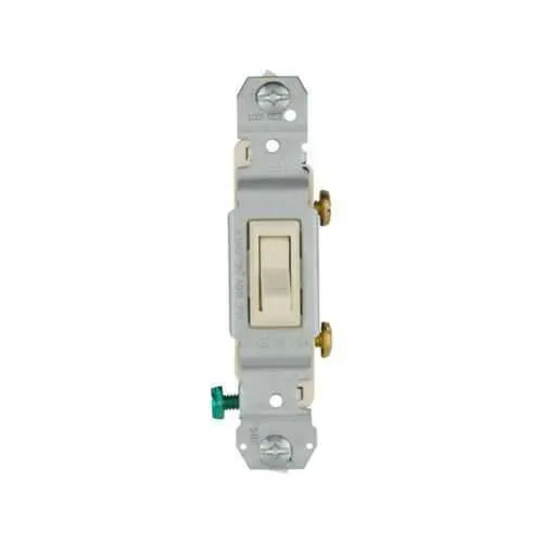 1301-73LA Eaton: Eaton toggle switch, #14-10 AWG, Flush, 120V, Side and push, Screw, Light almond, Load type: Motor Control, Fan, LED, Incandescent, ELV, MLV, CFL, Flourescent, Halogen, Single-Pole, -20° to 60°C, Single-Pole, Polycarbonate