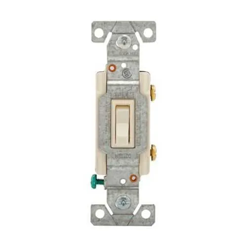 1301-7LTLABX Eaton: Eaton toggle switch, Lighted, #14-10 AWG, 15A, Residential, Flush, 120V, Side and push, Screw, Light almond, Load type: Motor Control, Fan, LED, Incandescent, ELV, MLV, CFL, Flourescent, Halogen, Single-Pole, Single-Pole, Polycarbonate
