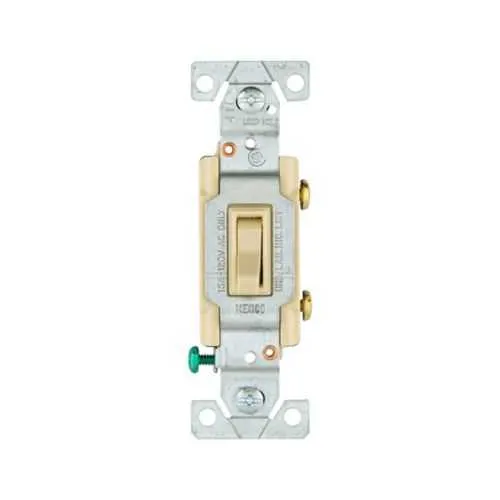 1301-7LTVBOX Eaton: Eaton toggle switch, Lighted, #14-10 AWG, 15A, Flush, 120V, Side and push, Screw, Ivory, Load type: Motor Control, Fan, LED, Incandescent, ELV, MLV, CFL, Flourescent, Halogen, Single-Pole, Single-Pole, Polycarbonate