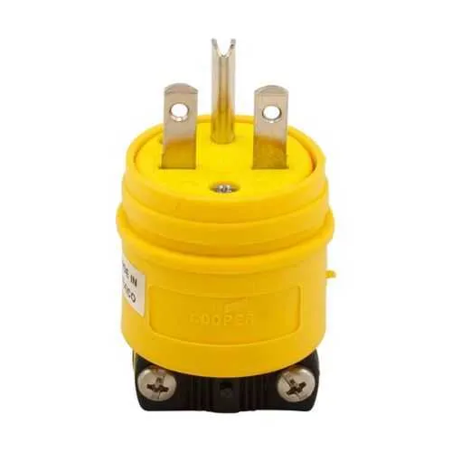1449 Eaton: Eaton Arrow Hart severe duty straight blade plug,#14-8 AWG,15A,Industrial,250V,Back wire,Yellow,black,Nickel-plated brass,Corrosion Resistant,Nylon,6-15P,Two pole,three wire,grounding,Screw,0.38-1" in diameter,Thermoplastic,Core pack