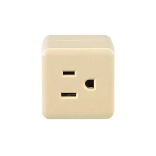 Feature: Three-outlet cube tap design delivers three NEMA 5-15R receptacles from a single plug. Benefit: Reduces clutter and eliminates the need for multiple wall taps, lowering wiring complexity and maintenance costs in offices and labs. Application: Desks, workstations, and light-duty equipment setups. Feature: 15A, 125V electrical rating. Benefit: Supports common computing and peripheral loads within code limits, improving electrical safety and reducing the risk of overloading outlets. Application: General-use environments with mixed device loads. Feature: Thermoplastic housing with ivory color. Benefit: Lightweight yet durable and aesthetically compatible with most interiors; resistant to everyday wear in indoor environments. Application: Corporate offices, classrooms, and maintenance areas. Feature: cULus Listed safety certification. Benefit: Provides regulatory peace of mind for compliance in residential and commercial facilities, streamlining procurement and audits. Application: Facility-wide rollouts and compliance-driven projects. Feature: Compact dimensions (2.4 in L Ă— 1.7 in W Ă— 1.1 in H) and lightweight (0.149 lb). Benefit: Fits tight spaces under desks or in panels, enabling cleaner installations and faster deployment. Application: Under-desk, bench, and equipment-side mounting. Note: These attributes collectively support efficient power distribution while maintaining compatibility with common North American outlets and plug-in devices.