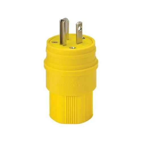 Eaton Arrow Hart watertight straight blade plug provides a rugged, moisture-resistant power connection for industrial equipment. In damp environments, conventional outlets can fail or complicate installation, driving downtime and maintenance costs. This unit carries cULus listing and IP67 protection, ensuring safety and reliability across harsh environments. With back-wire terminations and compatibility with #18-10 AWG conductors, it delivers fast, secure wiring in the field. The nickel-plated brass contacts resist corrosion, while the Santoprene thermoplastic elastomer body stands up to oils and abrasion. Rated at 250V and 20A with a 6-20P configuration, it is well-suited for demanding industrial applications and supports durable, code-compliant power distribution.