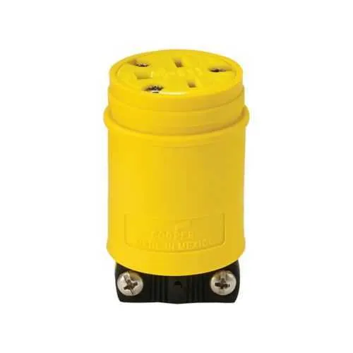 1549 Eaton: Eaton Arrow Hart severe duty straight blade connector,#14-8 AWG,15A,Industrial,250V,Back wire,Yellow,black,Nickel-plated brass,Corrosion Resistant,Nylon,6-15R,Two pole,three wire,grounding,Screw,0.38-1" in diameter,Thermoplastic,Core pack