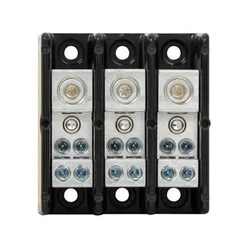 16220-3H Eaton: Eaton Bussmann series power distribution block, 600 Vac, 600 Vdc, 175 A, Three-pole, SCCR: 100 kA, Black, Molded Thermoplastic Base, Tin-plated aluminum connector