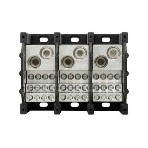 Feature: 570 A amperage rating with 600 Vac/600 Vdc voltage rating and SCCR of 10 kAIC. Business Impact: Supports high-load distribution with robust short-circuit protection, enabling safer, more reliable panel designs. Application: Suitable for industrial control panels and machine interfaces where heavy motor loads are present. Feature: Three-pole configuration. Business Impact: Reduces wiring complexity and panel footprint while maintaining clear, organized connections. Application: Ideal for centralized distribution in automated equipment and packaging lines. Feature: Molded thermoplastic base. Business Impact: Improves environmental resilience and impact resistance, contributing to longer service life in harsh factories. Application: Panel enclosures exposed to dust, moisture, or vibration. Feature: Tin-plated aluminum connectors. Business Impact: Enhances contact reliability and corrosion resistance for durable field installations. Application: High-current wiring in rugged industrial settings. Feature: RoHS compliant. Business Impact: Ensures regulatory compatibility across modern deployments and simplifies procurement for compliance-heavy projects. Application: Automotive and industrial automation environments where substance restrictions matter. Feature: Compact dimensions and weight (6.5 in L, 4.25 in W, 3.75 in H, 2.1 lb). Business Impact: Eases panel integration and reduces installation time, improving overall project efficiency. Application: Space-constrained control cabinets and retrofit installations. Feature: Documentation and catalogs. Business Impact: Accelerates sourcing, qualification, and spec alignment for engineers and buyers. Application: Spec-driven automation projects requiring traceable references.