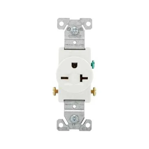 1876W-BOX Eaton: Eaton commercial specification grade single receptacle, #14-10 AWG, 20A, Commercial, Flush, 250V, Side wire, White, Brass, Nylon face, PVC bottom, 6-20R, Single, Screw, PVC, ED Box