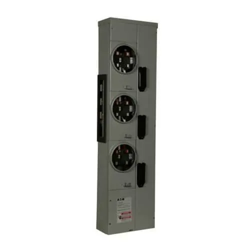 1MM320RRL Eaton: Eaton residential meter stack, Amperage rating: 200A, Bus rating: 800A, Outdoor, Interrupt rating depends on selected main circuit breaker, Single-phase in/single-phase out, 3 Sockets, Aluminum, Ringless, 120/240 Vac, 4-jaw