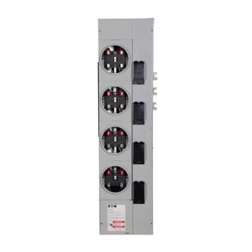 1MM412RC Eaton: Eaton residential meter stack, Amperage rating: 125A, Bus rating: 800A, Outdoor, Interrupt rating depends on selected main circuit breaker, Single-phase in/single-phase out, Copper, 4 Sockets, Ring, 120/240 Vac