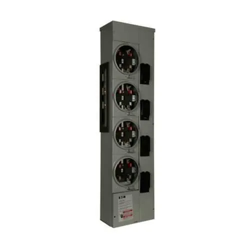 Eaton residential meter stack provides multi-meter service for residential electrical panels. Contractors and facilities managers frequently wrestle with wiring complexity and installation delays when adding metering for multi-tenant buildings or split-load homes. With UL Listed safety, a NEMA 3R outdoor-ready enclosure, and a 125A/800A bus architecture, this design delivers safety, weather resistance, and scalable capacity. Designed for reliability in residential metering and light commercial applications, it supports four-jaw terminations and four sockets, reducing field errors and commissioning time. Streamlining procurement and installation, the meter stack aligns with compatible secondary breakers BR2_, BRH2_, BRHH2_ and employs aluminum bus to deliver lighter weight with durable performance.