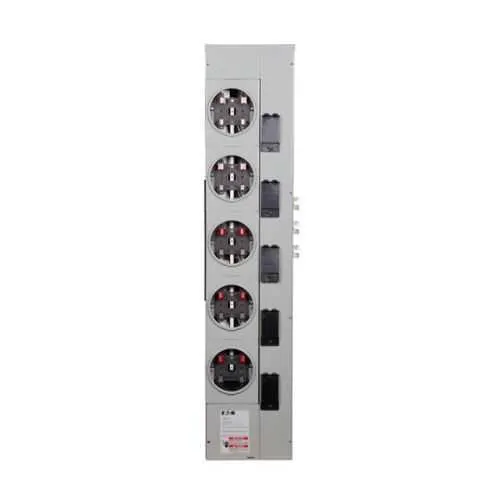 1MM512RC Eaton: Eaton residential meter stack, Amperage rating: 125A, Socket rating: 125A, Bus rating: 800A, Outdoor, Interrupt rating depends on selected main circuit breaker, Single-phase in/single-phase out, 5 Sockets, Copper, Ring, 120/240 Vac