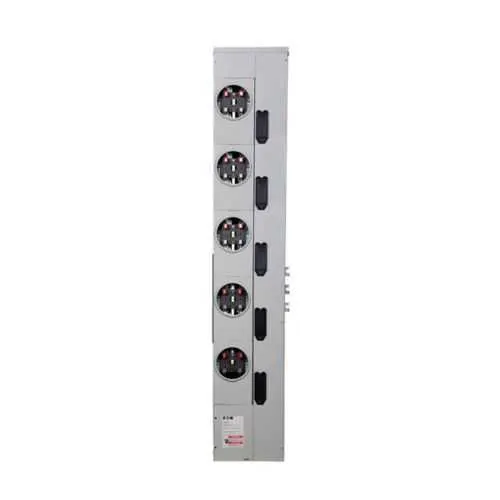 1MM520R Eaton: Eaton residential meter stack, Amperage rating: 200A, Bus rating: 800A, Outdoor, Interrupt rating depends on selected main circuit breaker, Single-phase in/single-phase out, Aluminum, 5 Sockets, Ring, 120/240 Vac