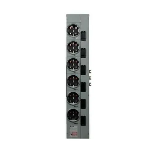 1MM612RRLB Eaton: Eaton residential meter stack, Amperage rating: 125A, Bus rating: 800A, Outdoor, Interrupt rating depends on selected main circuit breaker, Single-phase in/single-phase out, 6 Sockets, Aluminum, Ringless with horn bypass, 120/240 Vac, 4-jaw