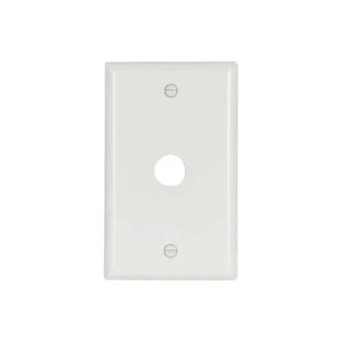 Feature: 0.625" hole cutout and thermoset body. Business Impact: Provides durable, stable terminations for both telephone and coaxial connections, reducing signal degradation and wear over time. Application: Ideal for telecom and data outlets in industrial environments, engineering labs, and office backrooms. Feature: White, standard single-gang wallplate. Business Impact: Aesthetically blends with equipment racks and enclosures, minimizing visual disruption while enabling quick replacements. Application: Retrofit or new installations in control rooms and data cabinets where a clean finish matters. Feature: Compliance and certifications (RoHS NAFTA; UL Listed; cULus Listed). Business Impact: Lower regulatory risk, simplified audits, and assured supplier responsibility. Application: Regulated sectors such as manufacturing, facilities, and commercial spaces requiring strict conformance. Feature: Dimensions and footprint (4.5 in H, 2.75 in W, 0.08 in D). Business Impact: Predictable backbox footprint enables reliable planning and fast field mounting. Application: Standard ED boxes and common wall-box installations across facilities. Feature: Weight and material (0.075 lb; Thermoset). Business Impact: Lightweight yet durable, easing installation and reducing shipping costs. Application: High-volume deployments and retrofit projects where handling and density matter. Feature: Compatibility and ease of installation (single-gang, standard). Business Impact: Improves install-time efficiency, reduces misalignment risk, and supports quick procurement decisions. Application: Telecom and coax outlets in industrial and commercial builds, compatible with existing Eaton/Arrow Hart ecosystems.