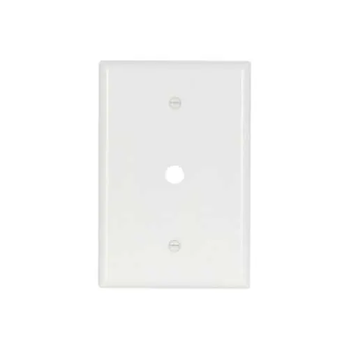 Feature: Oversize, single-gang wallplate with a 0.37 inch cutout. Business Impact: Reduces field modification time and improves alignment with backboxes. Application: Ideal for telephone and coax outlets in offices and data centers.Feature: Thermoset material and white finish. Business Impact: Delivers durable, long-lasting performance and a clean aesthetic that resists wear. Application: Suitable for high-traffic commercial environments where terminations must remain visually tidy.Feature: Certifications including cULus Listed, UL Listed, CSA Certified, and RoHS compliance. Business Impact: Supports regulatory compliance and mitigates procurement risk. Application: Ideal for regulated facilities and audits across North America.Feature: Oversize, 1-gang footprint with standard backbox compatibility. Business Impact: Simplifies installation and reduces field rework. Application: Quick deployment in telecom rooms and office walls.Feature: 0.08 in depth and 5.25 in height by 3.5 in width. Business Impact: Provides stable mounting and consistent finishes. Application: Works with common ECs and faceplates in new-builds and retrofits.