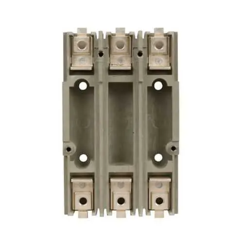 Feature: Compact footprint (8 in L x 4.4 in W x 3.2 in H) and three-pole design → Business Impact: Maximizes switchboard real estate and speeds installation in confined naval panels → Application: Shipboard switchboards and panelboards where space is at a premium. Feature: Imperial mounting base and rear connection → Business Impact: Eases alignment with standard mounting patterns and simplifies wiring routes → Application: Retrofit and new-build naval panels requiring rear-entry installation. Feature: Compatibility with AQB-A101/A103 and NQB-A101/A103 breakers → Business Impact: Reduces spare parts stock and risk of mismatched components → Application: Systems relying on Eaton modular protection across platforms. Feature: UL Listed certification and Naval class designation → Business Impact: Enables compliance with maritime electrical safety and reliability standards → Application: Naval ships and government contracts. Feature: Documentation and warranty support (NSN, catalog notes) → Business Impact: Improves lifecycle planning and maintenance forecasting → Application: Procurement and service environments. Feature: Electrical ratings (500 VAC, 250 VDC) and rear, three-pole operation → Business Impact: Supports mixed AC/DC protection in marine panels without adapters → Application: Heavy-duty shipboard protection where reliability matters.