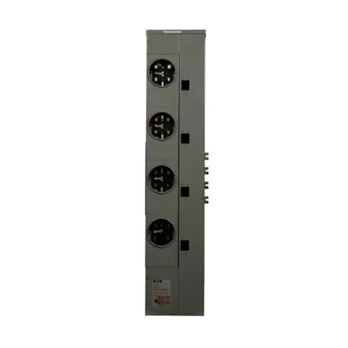 Feature: Multiple metering in a single enclosure enables 125A service and 800A bus rating for distributed occupancy loads. Business Impact: Reduces the number of separate meters and simplifies compliance documentation, leading to faster permit approvals and lower installation costs. Application: Ideal for multi-tenant residential buildings and small commercial venues where submetering is required for accurate tenant billing and energy management. Feature: Indoor-rated enclosure with no bypass ensures safer operation and easier service access. Business Impact: Minimizes exposed wiring, improves fault isolation, and simplifies routine maintenance. Application: Building automation and energy monitoring systems benefit from reliable, protected metering in controlled environments. Feature: Four sockets and five-jaw ring provide flexible connection options for up to three-phase inputs with single-phase outputs. Business Impact: Reduces wiring errors and allows straightforward integration with existing MCB-based panels. Application: Submetering for mixed 3P/1P circuits in apartment complexes or commercial suites. Feature: Copper construction with 800A bus and 125A main provides robust current handling and long-term reliability. Business Impact: Enhances safety margins, lowers arc-flash risk, and extends service life in demanding environments. Application: Industrial-grade residential electrical installations demanding durable metering infrastructure. Feature: Dimensions of 48.5 in height, 7.01 in width, 12.26 in depth, and 59 lb weight define a compact footprint for retrofit projects. Business Impact: Fits standard indoor spaces while offering ample mounting room for meters and wiring. Application: Retrofit projects in existing meter rooms with space constraints. Feature: Includes Eaton's warranty and UL Listed certification. Business Impact: Reduces lifecycle risk, ensures regulatory compliance, and provides post-sale support. Application: Confidence for electrical contractors and facility managers during deployment.