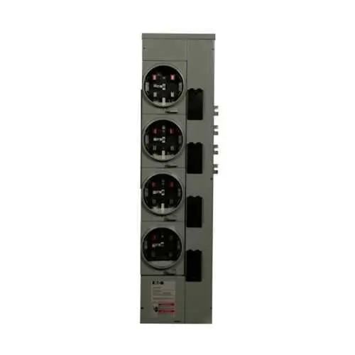 3MM412RRL Eaton: Eaton's Three-Phase Residential Meter Stack Module, Group Metering Type, 125A, Aluminum Bus 800 Ampere, No bypass, Indoor/outdoor, Five-jaws, 4 Sockets, Three-phase in, single-phase out, Ringless Security, 120/208V