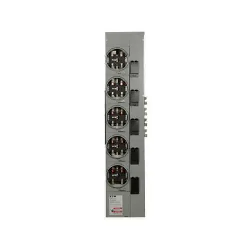 Feature: Multiple metering capability consolidates meters in a single enclosure, reducing hardware footprint and simplifying tenant billing. Business Impact: Improves accuracy of energy accounting, lowers field wiring complexity, and reduces installation time. Application: Suitable for multi-tenant residential buildings, light commercial properties, and outdoor metering需要. Feature: Outdoor enclosure designed for exterior installation with UL Listed safety certification. Business Impact: Enables outdoor deployment, lowers indoor space needs, and supports compliance with safety standards. Application: Exterior meter stacks on campuses, apartment complexes, and service entrances exposed to weather. Feature: Five-jaw sockets with a fifth jaw included at 9 o'clock position adds capacity for additional feeders. Business Impact: Facilitates scalable upgrades without cabinet replacement, cutting retrofit costs. Application: Retrofit projects and staged metering expansions. Feature: 125A service rating with Cu bus 1200A supports higher loads in a compact form. Business Impact: Accommodates growing feeding demands while maintaining a small footprint. Application: Main service distribution in tight urban or campus environments. Feature: Three-phase in, single-phase out configuration supports mixed service types. Business Impact: Streamlines protection and metering across varied loads, reducing inventory complexity. Application: Commercial and residential applications with diverse circuits. Feature: Compatibility with selected MCBs and horn bypass offers design flexibility. Business Impact: Enables tailored protection schemes and easier field maintenance. Application: Utility-scale or building management installations needing adaptable metering. Feature: UL Listed certification and Eaton warranty provide safety compliance and risk protection. Business Impact: Reduces procurement risk and supports long-term asset protection. Application: Regulatory deployments and facility asset management programs.