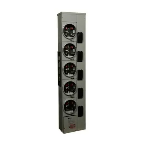 This meter stack excels in outdoor residential and light commercial applications requiring multiple meters in a compact footprint. It is suitable for multi-tenant buildings, master-metering scenarios, and retrofit projects where space is at a premium. The 125A service and five-jaw sockets simplify integration with existing Eaton MCBs and field-wiring practices.