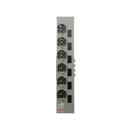Feature → Business Impact → Application: Multiple metering enables simultaneous monitoring and accurate billing for complex loads, improving energy management and reducing manual read errors in multi-tenant or mixed-use facilities. This supports data-driven decisions and faster utility reconciliation in residential developments and light commercial projects. Application: Outdoor, weather-exposed meter stacks reduce on-site weatherproofing time by providing a purpose-built enclosure that maintains performance and safety in street- and curbside installations. Feature → Business Impact → Application: 125A service with an 800A bus and five-jaw sockets provides flexible, scalable wiring options for mixed-phase configurations, enabling seamless expansion without rework. This translates to lower total project costs and faster due-diligence for utility interconnections in new housing developments or retrofits. Application: Utilities and contractors upgrading service entrances with dependable, future-ready metering capacity. Feature → Business Impact → Application: Six sockets and three-phase in, single-phase out capability simplify distribution topology, reducing the need for additional subpanels and minimizing voltage drop risk in compact layouts. This supports compact layouts for tight utility rooms or exterior meter banks in townhomes and small campuses. Application: Energy management retrofits and new-build residential blocks. Feature → Business Impact → Application: Outdoor-rated, UL Listed enclosure delivers weather protection and proven safety, lowering maintenance cycles and extending service life in exposed environments. This translates to lower lifecycle costs and higher reliability for remote installations. Application: Outdoor meter stacks serving multifamily dwellings, commercial clusters, and campus housing. Feature → Business Impact → Application: Comprehensive warranty coverage from Eaton provides post-installation support and predictable replacement timelines, reducing risk during commissioning and turnover. Application: Projects prioritizing long-term serviceability and supplier-resolved issues after installation.