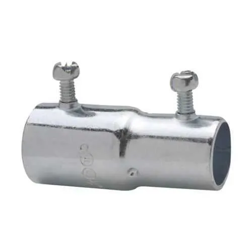The 422 is designed specifically as an EMT-to-rigid combination coupling with a 1"-1" trade size. Its set-screw mechanism provides a secure grip on both EMT and rigid conduit runs, reducing the need for adapters. The zinc-plated steel construction supports standard industrial conduits, and the 3 in length helps span minor offsets while maintaining alignment in tight spaces.