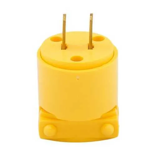 4862 Eaton: Eaton straight blade plug , #18-12 AWG, 15A, Commercial, 125V, Back wire, Yellow, Brass, Vinyl, 1-15P, Two-pole, two-wire, non grounding, Screw, Vinyl, Core pack