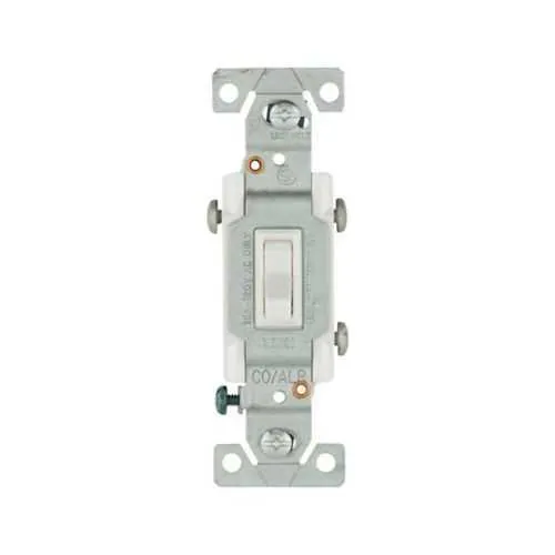 Eaton toggle switch delivers reliable residential lighting control for wall-mounted circuits. In retrofit projects, tight spaces and mixed wiring methods can slow installation, but this model’s side-wire terminals and screw connections simplify field wiring. It carries UL Federal Specification Classification 6241 05 and is suited for standard residential wiring, delivering safety and regulatory compliance. Built for contractors and procurement teams, this 15A, 120V, three-way capable unit reduces stocking diversity by covering common lighting loads. Its polycarbonate body and brass terminal enclosure offer durability in busy electrical environments, while a white finish blends with typical wall decor. This combination translates to faster installs, fewer call-backs, and reliable long-term operation for residential projects.