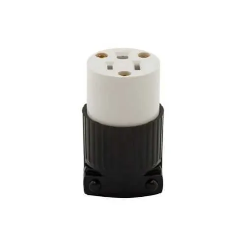 Back-wire termination reduces field assembly time and minimizes loose connections, translating to lower labor costs and improved reliability in panel wiring. This design addresses common issues where screw terminations loosen under vibration, ensuring stable connections for industrial equipment. The 5269 supports #18-12 AWG conductors with a 0.33-0.66 inch cord range, enabling flexible wiring layouts in compact enclosures and control cabinets. A two-pole, three-wire grounding receptacle with an extra heavy-duty industrial specification grade provides dependable performance in demanding environments, reducing downtime and replacement costs. The brass contact and nylon face paired with a thermoplastic, polycarbonate housing deliver durable, corrosion-resistant performance, improving long-term maintenance intervals. Color-coded white and black aids quick identification, decreasing wiring errors during installations and field retrofits. Compatible with standard 5-15R NEMA configurations, it integrates smoothly with common wiring devices and control panels. The back-wire method also simplifies retrofits, making upgrades faster and more cost-effective for equipment operators and electricians alike.