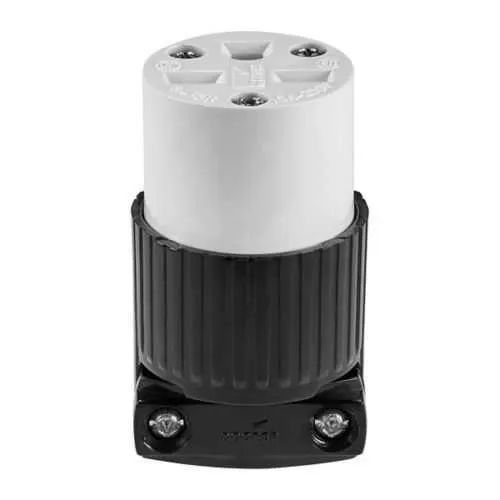 Feature: Severe-duty straight blade design with nickel-plated brass contacts. Impact: Provides durable electrical continuity and excellent corrosion resistance in tough industrial settings, lowering maintenance frequency and replacement risk. Application: Suitable for rugged control panels, machine tools, and outdoor equipment where reliability is critical. Feature: Nylon body with back-wire termination and a cord range of 0.38-1 inches. Impact: Simplifies field terminations and provides secure screw connections, reducing installation time and rework. Application: Industrial power connections in harsh environments where space is tight. Feature: 15A at 250V, NEMA 6-15R compatibility; UL NOM 6221 02 certification. Impact: Ensures safe, code-compliant power distribution for equipment and panels. Application: Control circuits and machinery wiring in factories. Feature: Core-pack packaging and standard receptacle configuration (Two-pole, three-wire grounding). Impact: Faster stocking and consistent field replacements. Application: OEM panel assemblies and service spare parts for industrial customers. Feature: Corrosion-resistant nickel-plated brass and color options Black White. Impact: Longer service life in corrosive environments reduces maintenance. Application: Environments with moisture, chemicals, or wash-down requirements.