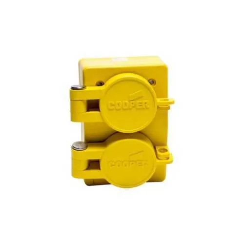 The Eaton watertight duplex receptacle 60W47DPLX is designed for industrial panels and harsh washdown environments. This solution addresses moisture ingress, dirt, and panel-level exposure that often cause unplanned downtime. With IP66 protection and cULus listing, it delivers dependable performance in damp or wet conditions while supporting back-wire or screw termination for flexible installation. The 15A, 125V NEMA 5-15R design, yellow glass-filled nylon body, and nickel-plated brass contacts help visibility, durability, and reliable conductivity. In short, it aligns with industrial procurement needs for safe, compliant, and efficient power distribution in rugged environments.