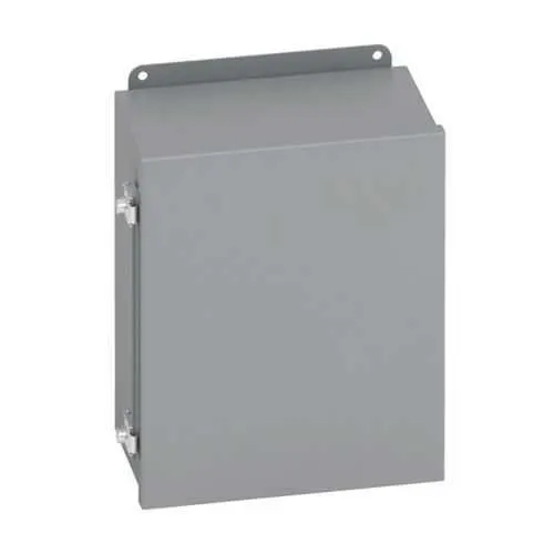 Feature: Compact 6x6x4 inch enclosure with external mounting feet → Business Impact: Saves wall space and simplifies mounting in tight plant areas, accelerating project timelines → Application: Ideal for wall-mounted control panels in machine shops and packaging lines. Feature: 16 gauge carbon steel construction with ANSI 61 gray painted finish → Business Impact: Delivers robust mechanical strength and corrosion resistance in harsh environments, reducing replacement costs → Application: Suitable for long-term installation in dusty or humid production floors. Feature: NEMA 12 rating with seamless poured-in-place gasket and hinged cover → Business Impact: Provides reliable enclosure sealing against dust and incidental liquid exposure, supporting regulatory compliance and reducing maintenance calls → Application: Used in electrical panels and junction boxes exposed to routine washdown and ambient contaminants. Feature: Cont. piano hinge, panel mount, and pulldrawn catch → Business Impact: Enhances serviceability with easy, repeatable access and secure closure, lowering maintenance time → Application: Retrofitable for controls cabinets requiring frequent access. Feature: External mounting feet and wall-mount capability → Business Impact: Enables fast installation on existing walls or service corridors, reducing field labor and misalignment risk → Application: Ideal for looped or modular control systems in process automation.