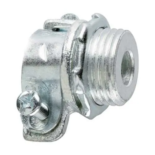 To install the 712 squeeze type connector, align the FMC conduit with the straight connector, tightened the squeeze nuts evenly until the body compresses around the conductor, and verify a secure seal. The malleable iron body provides rugged support, while the non-insulated design streamlines assembly in ordinary-location environments.