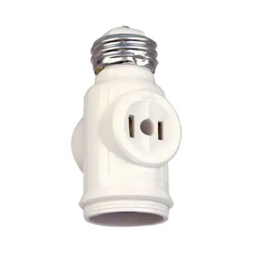 715-3W-SP Eaton: Eaton socket adapter, One socket to one socket with two 250W NEMA 1-15R outlets, 125V, Medium base, White, Thermoplastic, 1-15R, NEMA 1-15R, 660W