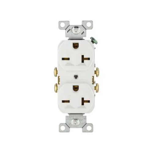 Feature: 20A at 250V with a NEMA 6-20R configuration. Business Impact: Supports higher power loads and reduces voltage drop in commercial circuits, enabling reliable operation of equipment like advanced computing, displays, and small motor loads. Application: Ideal for offices, retail spaces, and educational facilities that require robust 250V outlets. Feature: Side-wire wiring method for #14-10 AWG conductors with a 14 lbf-in torque rating. Business Impact: Speeds up installation, ensures a secure termination, and minimizes rework due to loose connections. Application: New builds and retrofits where fast field wiring is critical. Feature: Flush mounting in a durable ED Box with a white nylon face and PVC body. Business Impact: Provides a clean, professional look and predictable box alignment, reducing concealment and rework. Application: Commercial interiors requiring precise fit and easy replacement. Feature: Auto-grounding with brass contacts and corrosion-resistant nylon face. Business Impact: Improves safety and longevity in high-traffic environments, lowering maintenance costs. Application: High-use spaces like lobbies, classrooms, and hospital corridors. Feature: RoHS compliant, cULus listed, and NOM 6233 01 classified. Business Impact: Ensures regulatory compliance and safer supply chain, reducing risk during audits. Application: Projects with strict environmental and safety standards in retail, healthcare, and corporate facilities.