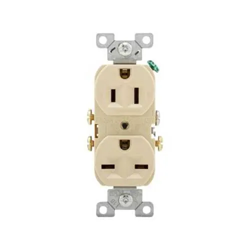 Dual voltage capability delivers 125/250 V operation, reducing inventory needs and enabling seamless supply across mixed-voltage installations in commercial spaces. Business impact: fewer part numbers, faster project completion. Application: office reticulation and light-industrial runways seeking reliable duplex outlets with flexible voltage use. The 15A rating and 14 lbf-inch torque provide secure terminations, improving branch circuit safety and reducing rework on marginal connections. Application: high-traffic work areas and data centers where reliability matters. Side-wire wiring supports straightforward installation with 3-wire configuration (two hots and a ground) and common 14-10 AWG conductors, which simplifies field work and minimizes mis-wiring risk. Application: quick, compliant terminations in flush-mount installations. Nylon face/body construction offers robust durability and heat resistance while maintaining a clean white aesthetic, easing plate matching in finished walls. Application: durable long-life performance in commercial interiors. Auto-grounding features help ensure ground continuity across outlets, reducing commissioning time and boosting safety in complex panel layouts. Application: speed and safety for multi-outlet banks. Packaging as an ED Box aligns with standard installation practices, enabling faster box-to-receptacle integration. Application: streamlined procurement and installation workflows for electrical contractors.