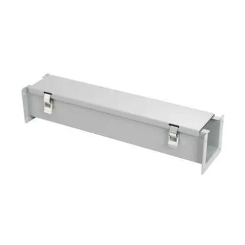 Hinged cover with heavy-duty butt hinges and quick-release latches provides fast access for inspections and maintenance, reducing downtime and labor costs in high-demand automation lines. This design improves serviceability in crowded control panels, enabling rapid cable reorganization during upgrades without compromising enclosure integrity. The 14-gauge steel construction delivers robust durability in harsh industrial environments, minimizing risk of damage during handling and installation, while maintaining long-term reliability in manufacturing floors and process plants.