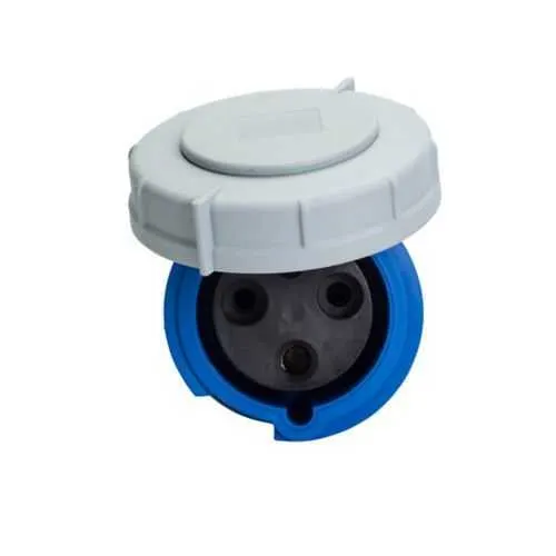 The AH360C6WDR provides a 60/63A amperage rating with dual voltage capability: 60A at 250V and 63A at 200-250V. It is a three-wire, two-pole connector with nickel-plated brass contacts, ensuring reliable power transfer to motors, drives, and control equipment in demanding industrial settings.