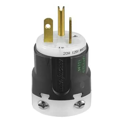 AH8315HG Eaton: Eaton Arrow Hart ultra grip hospital grade straight blade plug, #18 to 12 AWG, 15A, Industrial, 125V, Back wire, Black and white, Brass, Nylon, 5-20P, Two-pole, three-wire, grounding, Screw, 0.33-0.66", Nylon, Core pack