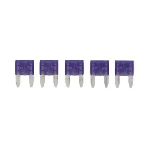 Feature: Amperage rating of 3 A with a 32 Vdc rating provides precise protection for low-voltage DC power paths. Business Impact: Reduces nuisance blows and guards controllers and power modules from overcurrent events. Application: Ideal for DC distribution in industrial equipment and control panels. Feature: Non-indicating blade fuse with violet color code and a zinc fuse element enables quick visual identification and robust fuse performance. Business Impact: Speeds maintenance decisions and minimizes replacement errors. Application: Suitable for crowded panels where fast fault isolation matters. Feature: Standard packaging of five per pack and blade-end construction simplifies stocking and installation. Business Impact: Lowers procurement overhead and ensures consistent replacement parts. Application: OEM and repair environments with steady SKU management. Feature: RoHS compliant construction supports regulatory and environmental requirements. Business Impact: Helps meet sustainability goals and procurement compliance. Application: Manufacturing facilities with strict material restrictions. Feature: Compact dimensions—1.38 in length, 1.6 in height, 0.44 in width—and a 0.3 lb weight enable installation in tight spaces. Business Impact: Improves enclosure utilization and reduces cooling load. Application: Panels and enclosures with limited clearance. Feature: 1 kAIC interrupt rating provides strong protection against short-circuit events. Business Impact: Enhances system safety and reduces damage to downstream devices. Application: DC power feeds in industrial automation and machines.