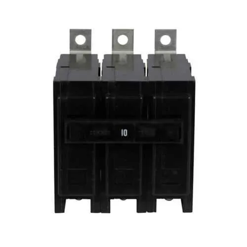 Feature: Quicklag industrial thermal-magnetic technology delivers precise trip curves for motor loads. Business Impact: Reduces nuisance trips and downtime while protecting conductors and equipment. Application: Protects motors and associated hardware in control panels and MCCs. Feature: 10 A amperage rating with 10 kAIC interrupt rating provides robust short-circuit protection. Business Impact: Limits arc energy exposure and equipment damage, boosting overall line protection. Application: 240 V distribution circuits feeding motors and heavy loads. Feature: Three-pole, bolt-on mounting enables secure, space-efficient installation. Business Impact: Simplifies retrofits, reduces panel modification, and speeds commissioning. Application: Industrial panels and power distribution racks with limited mounting clearance. Feature: HACR rated alongside UL Listed and CSA Certified markings. Business Impact: Ensures code compliance and safer HVAC and commercial installations. Application: Environments requiring regulatory conformity and verified safety. Feature: Compact footprint with documented dimensions and 1.05 lb weight; 1-year warranty. Business Impact: Eases inventory management and lifecycle planning, lowering total cost of ownership. Application: Panel assemblies where space and reliability matter. Feature: Compatibility with standard 3-pole 240 V systems and bolt-on mounting. Business Impact: Reduces installation risk and speeds sourcing from a trusted OEM. Application: Motor control centers, distribution panels, and industrial equipment enclosures.