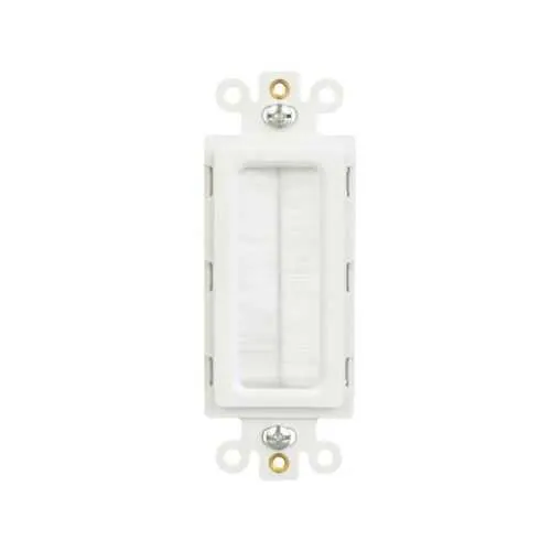 The BIM1W-F-L is designed for standard 1-gang mounting frames and compatible with common wall boxes used in commercial build-outs. It accommodates a multimedia brush insert to manage mixed telecom and coax cabling, simplifying retrofits and new installations without special adapters. Always verify box depth and enclosure ratings to ensure a snug, trim finish.