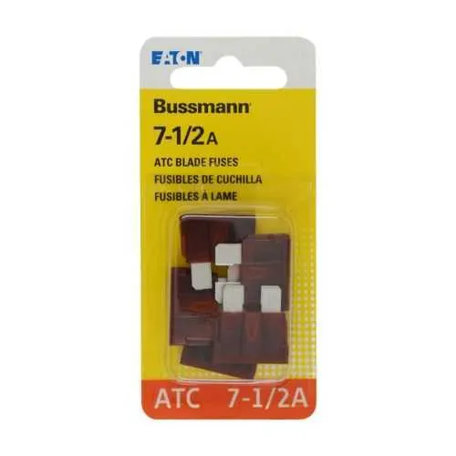 Feature → Business Impact → Application: 32 VDC rating ensures compatibility with common automotive and industrial DC circuits, providing reliable overcurrent protection that reduces downtime and component stress in control panels and motor drives. Application: DC power rails in automation panels benefit from predictable trip behavior and minimal nuisance resets. Feature → Business Impact → Application: 7-1/2 A amperage rating delivers precise protection for circuits with moderate load, lowering the risk of collateral damage to downstream components during short-circuits. Application: Used in 12–24 V systems where protection is needed without unnecessary disconnection in normal operation. Feature → Business Impact → Application: Non-indicating, brown blade fuse design reduces panel clutter and simplifies visual inspection in dense control enclosures. Application: Ideal for compact electrical assemblies where indicators could mislead maintenance staff. Feature → Business Impact → Application: Standard blade geometry and two-fuse packaging enable easy drop-in replacement and fast stocking across facilities. Application: Replacement in retrofits and new builds where ATR family compatibility is advantageous. Feature → Business Impact → Application: RoHS compliance ensures regulatory alignment and easier integration into modern manufacturing supply chains. Application: Design-in for eco-conscious projects and international deployments. Feature → Business Impact → Application: Small footprint (0.75 in x 0.49 in x 0.2 in) and light weight (0.1 lb) support space-constrained installations. Application: Enclosures with tight clearances and minimal mass budgets in automated machinery.