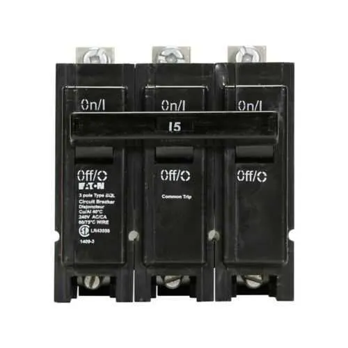 Feature: Bolt-on classic replacement design simplifies retrofits in legacy Eaton frames. Business impact: Reduces retrofit labor and downtime, accelerating panel upgrades. Application: Retrofit aging control panels and crowded enclosures without extensive rewiring, minimizing project timelines and field risk. Feature: Three-pole construction provides synchronized interruption across all phases. Business impact: Improves protection for 3-phase systems and reduces unbalanced faults. Application: Suitable for industrial control panels and distribution boards requiring coordinated tripping. Feature: 100 A amperage rating with Cu/Al conductors up to #8-2/0 AWG. Business impact: Maximizes wiring flexibility and feeder capability without panel redesign. Application: Power feeds in machine controls, conveyors, and other industrial equipment. Feature: 10 kAIC interrupt rating at 120/240 Vac. Business impact: High fault-current tolerance protects equipment and reduces downstream damage. Application: Service entrances and distribution networks in demanding industrial environments. Feature: HACR rated compliance supports HVAC and motor loads. Business impact: Fewer nuisance trips and safer operation for thermal management circuits. Application: HVAC control panels, motor control centers, and lighting panels in factories. Feature: Compact 5 x 3 x 3 in footprint and 0.5 lb weight. Business impact: Space savings and easier handling in retrofit projects. Application: Crowded enclosures and new builds where dimensions constrain component choice.